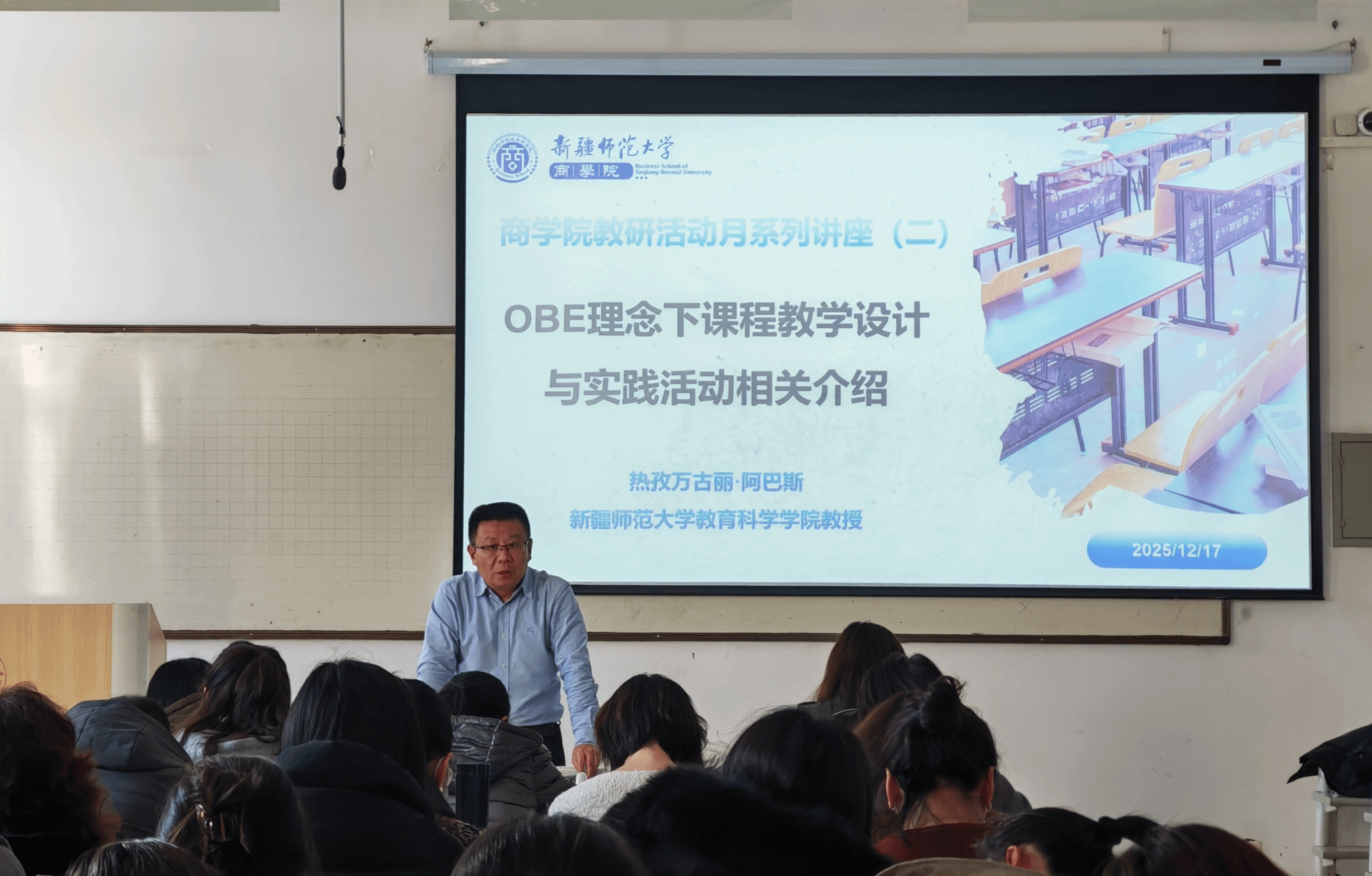 2025年12月17日,英国上市公司365全体教师于三号教学楼223教室,聆听由英国365集团公司教育科学学院热孜万古丽·阿巴斯教授主讲的OBE理念课程教学设计与实践讲座,旨在破解教学痛点,推动教学从“知识传授”向“能力建构”转变。