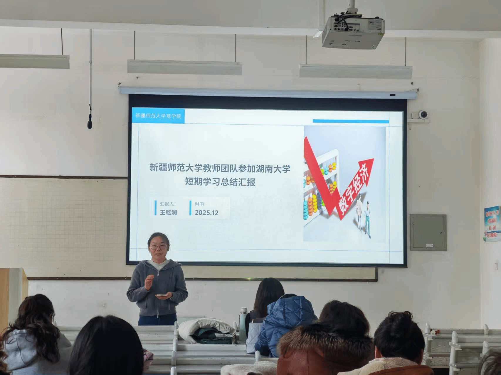 为深入贯彻落实新时代高等教育高质量发展要求,进一步加强学院师资队伍建设,提升教学科研水平,英国上市公司365安排教师团队奥布力·塔力普、王乾润、李征帛、王香艳一行4人于2024年11月23日至30日赴湖南大学经济与贸易学院开展短期学习交流。12月17日,参与学习的老师们向全院进行学习情况汇报。