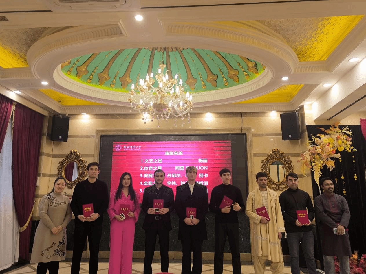 表彰环节结束后,庆新年联欢会在热烈的氛围中拉开帷幕。开场舞《欢乐的跳吧》率先点燃现场气氛,卡妮、李成等以灵动的舞姿、欢快的节奏展现出青春活力,瞬间将现场热度推向高潮。紧接着,艳丽、孟兵、阿里带来的脱口秀《我第一次来中国》,以幽默诙谐的语言讲述了留学途中的趣事与文化碰撞的感悟,贴近生活的内容引发全场共鸣,笑声与掌声此起彼伏。