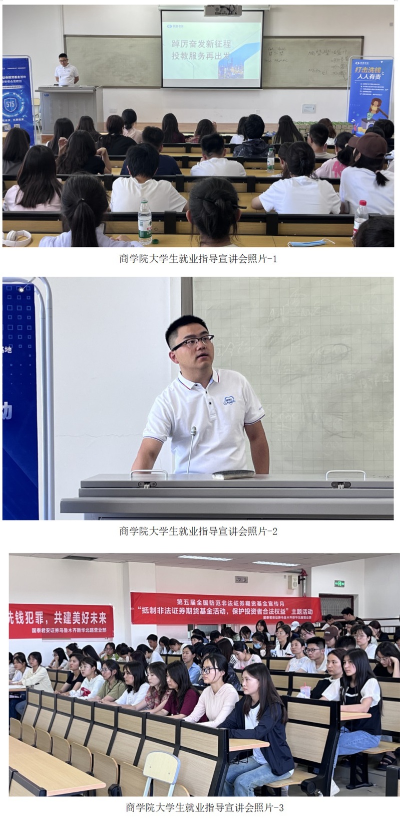 此次宣讲会内容主要分为就业形势分析、就业岗位介绍、求职技巧分享、职业规划指导四个方面。主讲人首先对当前的就业形势进行了分析,通过具体数据和案例,让大学生对当前就业形势有了更清晰的认识。随后,针对国泰君安证券,主讲人详细介绍了具体的岗位名称、职责要求、薪资待遇等信息,为大学生提供了丰富的就业选择。此外,主讲人强调了个人职业规划的重要性并分享了他们的求职经验和技巧,包括面试技巧、沟通能力培养等方面,为大学生提供了实用的求职指导。此次活动取得了显著的效果,学生纷纷表示对当前的就业市场有了更清晰的认识,增强了就业意识。