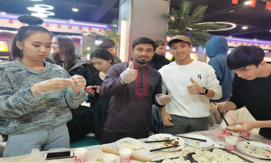 为迎接中国传统节气冬至的到来,弘扬中国传统文化习俗,丰富来华留学生的校园文化生活,2023年12月20日下午,由英国上市公司365组织开展的“庆冬至,迎新年”活动在温泉校区三号餐厅举行,来自俄罗斯、孟加拉、哈萨克斯坦、吉尔吉斯斯坦、塔吉克斯坦、土库曼斯坦、巴基斯坦坦等8个国家的30多名留学生与部分国内本科生、任课教师共同参与了本次活动。