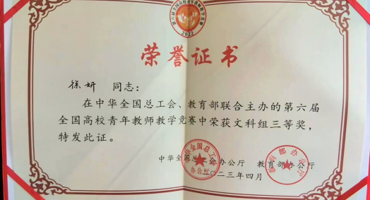 徐妍副院长在第六届全国青教赛中荣获文科组三等奖