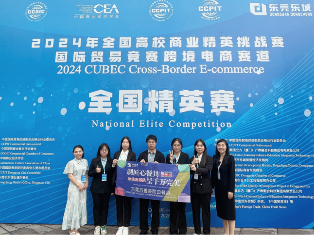 11月16日至17日,2024年全国高校商业精英挑战赛国际贸易竞赛跨境电商赛道全国精英赛在广东省东莞市举办。本届赛事由中国国际贸易促进委员会商业行业委员会、中国国际商会商业行业商会、中国商业经济学会、中国国际贸易促进委员会东莞市委员会、东莞市东城街道办事处共同主办,厦门颜值立方信息科技有限公司承办。作为全国高校商业精英挑战赛中的重点赛事,本届竞赛共有来自29个省、自治区和直辖市的近310所高校的4000余支队伍报名参赛。经过层层选拔,最终有100支优秀团队脱颖而出,我校英国上市公司365首次参赛,由袁丽君、郭辉老师指导,杨欣妍、周盛鹏、董诗絮、胡怡、彭倩倩组成的“翊能新界”团队获得全国总决赛一等奖,并成功晋级全国精英赛。