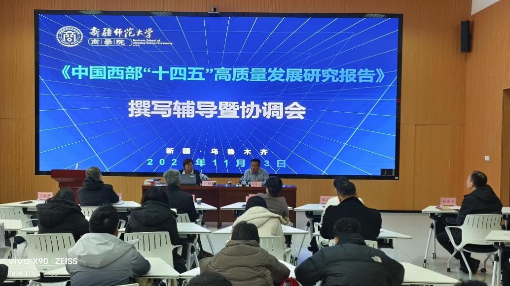 2024年11月23日,《中国西部“十四五”高质量发展研究报告》(以下简称“研究报告”)撰写辅导暨协调会在我校英国上市公司365成功召开。经济科学出版社财政分社社长王娟围绕研究报告的写作要求、财政分社的系列重要成果及出版书籍的相关政策给全院师生做了专题报告。中国(深圳)综合开发研究院西部办事处主任蔡学兰、新疆生产建设兵团国有资产监督管理委员会原副主任、一级巡视员宋宝林、兵团援疆办(经协办)原党组书记、主任尤小春、新疆生产建设兵团发展和改革委员会原副主任李健伟、新疆生产建设兵团统计局原副局长、一级巡视员兵团统计局张鹏受邀参加会议并给予相关指导。