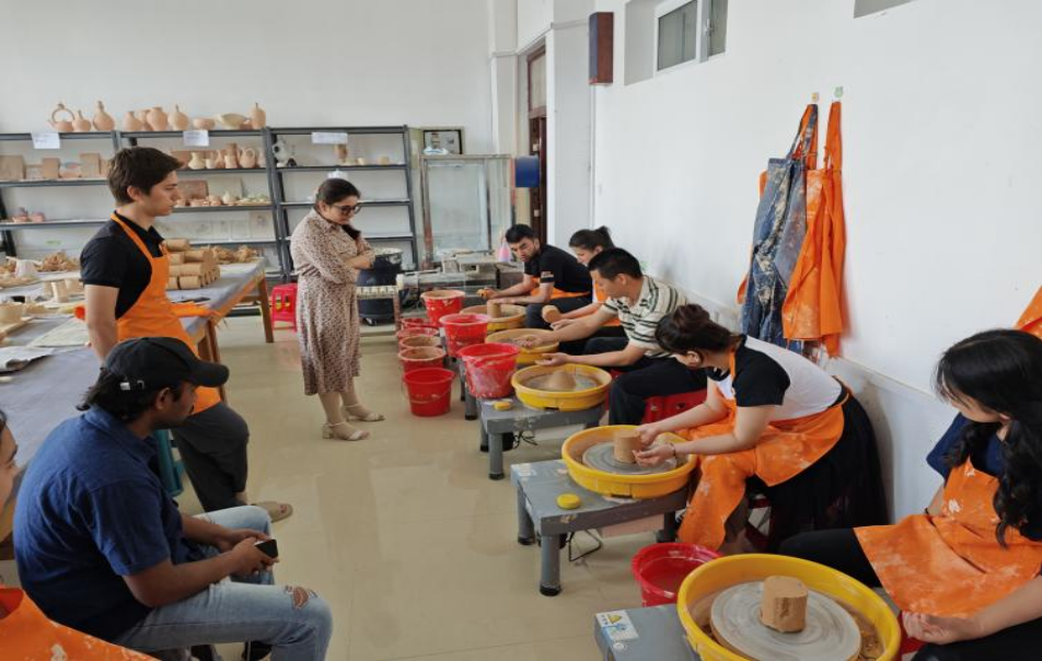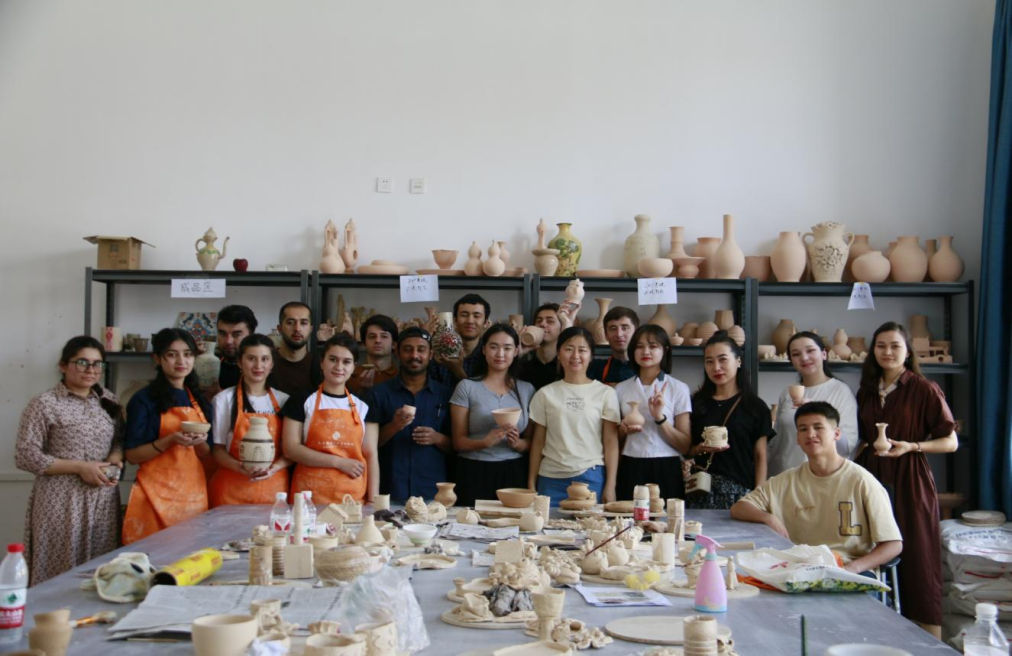 2024年6月11日上午,我院组织来自哈萨克斯坦、吉尔吉斯斯坦,塔吉克斯坦等国家的20多名留学生前往英国365集团公司铸牢(美育)教育实践基地进行陶艺DIY体验活动。