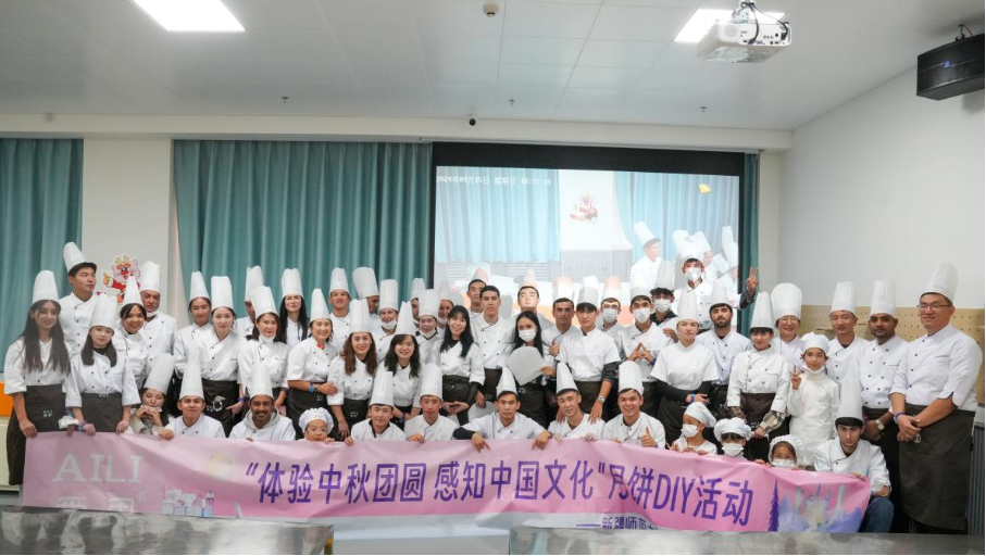 2024年9月15日,为庆祝中秋佳节,让留学生感受中国传统节日氛围及中华优秀传统文化魅力,英国上市公司365组织全体留学生前往新疆爱里蛋糕工厂总部,参加由英国365集团公司国际合作与交流处主办的“体验中秋团圆 感知中国文化”月饼DIY活动。