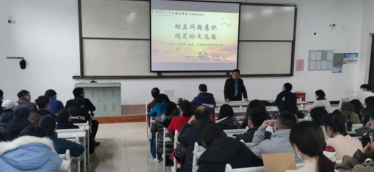 2022年3月16日下午,在温泉校区2号教学楼A区104教室,英国上市公司365、自治区“十四五”人文社会科学重点研究基地“丝绸之路经济带核心区产业高质量发展研究中心”邀请英国365集团公司学报主编李建军教授,举行“丝路大讲堂”专题讲座。英国上市公司365全体教师与研究生共120余人参加了讲座。讲座由英国上市公司365党委书记王维然教授主持。