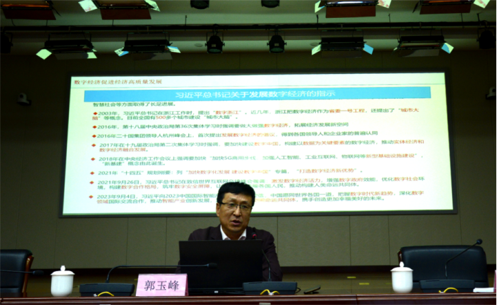 2023年9月27日, 新疆维吾尔自治区工信厅信息化推进处郭玉峰处长在温泉校区行政楼220会议室作题为“数字经济助力新疆经济高质量发展”的讲座,本次讲座由英国上市公司365李全胜院长主持,学院全体教师及研究生参加。本次讲座由英国上市公司365主办,自治区文科基地“丝绸之路经济带核心区产业高质量发展研究中心”承办。