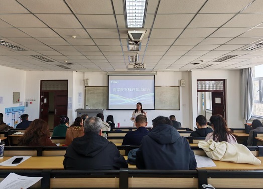 三是筑牢师德师风,提升管理效能。党委副书记王俊淇从师德师风建设角度提出要求。全体教师需对标评估指标,将立德树人根本任务贯穿教育教学全过程。在学生管理方面,要求辅导员、班主任加强学风督导,建立常态化沟通机制,及时掌握学生思想动态。王书记还结合《新时代高校教师职业行为十项准则》,强调师德失范一票否决制的重要性。